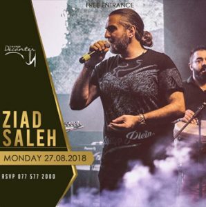 Ziad Saleh will perform LIVE this Monday at Decanter Lounge ! Entrance will be FREE, Book your table now to avoid disappointments 0775772000