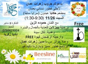 لأحلى سيدات وصبايا بعمان يدعوكم جروب زهرات عمان لأقوى عرض فطور ليوم السبت* 11/26* بمطعم حكايا عبدون* (9:30-1:30)* برعاية بييزلاين للعناية بالشعر والبشرة * مع الفنان حموده الزين * فطور شرقي مميز * مع ارجيله FREE او قهوة *وهدية لكل …