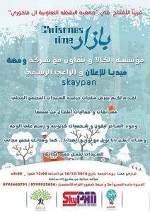skypanشاركو معنا في بازار في جمعيه اليقظه التعاونية ال فاخوري بتعاون مع الراعي الرسمي لهذا الحدث شركة Christmas time Bazaar @ Aal-Fakhoury Hall, Khalda On Friday 16/12/2016 - from 12:00pm until 8:00pm كونو معنا في حفل بابا نويل الأجمل.. من …