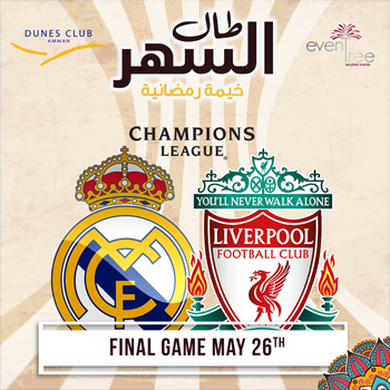 Real Madrid or Liverpool? A final game on fire LIVE at Tal El Sahar – Dunes Club Amman! Big LED screen, food and great atmosphere!