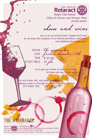 Rotaract club of Amman and Rotaract club of Amman west invite you to their annual Cheese and Wine event,
