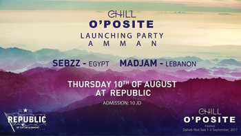 To bring the festival to life, join us next Thursday the 10th of August for Chill O’Posites Launching Party taking place at Republic featuring the one and only MaDJam all the way from Beirut and coming to you all the way from Egypt, SEBZZ.
