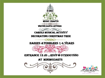 We will be Writing Santa Letters, decorating MiniMozarts Blue Christmas Tree and enjoying a christmas themed musical activity this Saturday 10:30 – 12:00 ….entrance 12 JD …booking at 0799007880