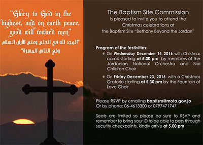 with Christmas carols starting at 5:30 pm by members of the Jardanian National Orchestra and Nai Chlidren Choir