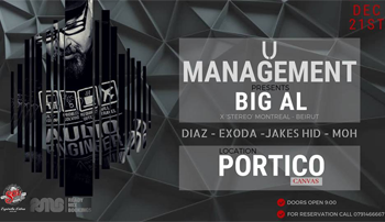 U Management is bring you JPF, Mirror Magazine & X Stereo Montreal’s resident, rocking many big labels In the music scene such as Armada & Ministry of Sound.. @BiG AL coming all the way from Beirut to drop his fresh tunes at Portico [Canvas] this Friday.