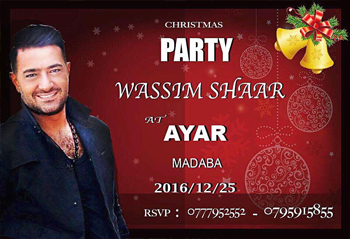 Christmas Party with Wassim Shaar @ AYAR Restaurant, Madaba 25/12/2016 RSVP : 0777952552 – 0795915855