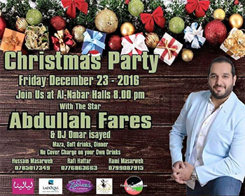 حفل بمناسبه عيد الميلاد المجيد مع النجم الاردني عبدالله فارس @ قاعه النبر