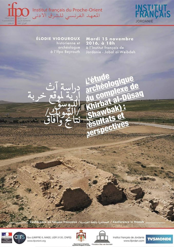 L’Institut français du Proche Orient vous propose une conférence sur le site énigmatique de Khirbat al- Dūsaq, dans le sud de la Jordanie. Vous pourrez ainsi découvrir les recherches réalisées depuis 2008 par Elodie Vigouroux, historienne, archéologue, spécialiste du Proche-Orient médiéval et chercheuse à l’IFPO Beyrouth, et ainsi comprendre l’histoire et les secrets de ce merveilleux site.
