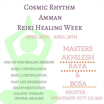 This April join Cosmic Rhythm Amman in our Reiki Healing Week! April 24th to April 28th