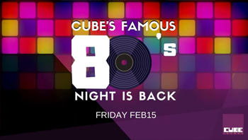 Lets go back to the 80s and revisit the best decade of music EVER with “Cube’s Famous 80’s Night” this FRIDAY FEB.15th!