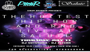 Come Thursday, July 13th and enjoy the hottest Rap, Hip Hop, and RnB at Salute/Beer Garden. DJ Sotusura will be setting the night off right with some of the best Hip Hop and Rap music to get you moving, and DJ PitchR will be tearing the house down afterwords.