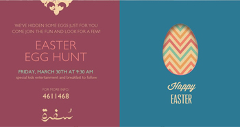 Bring your kids and join the fun for a special egg hunt event at Sufra Restaurant & Garden!