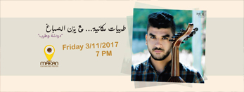 موعدنا الجمعة الجاي مع المبدع يزن الصباغ في ” طربيات مكانية” . يعني رح تكون قعدة طربيه بأجواء مكانيه! نتعرف فيها على ضيفنا الشاب المبدع و نسمع مجموعة من الأغاني بصوته الرائع وندردش معه ونسأله عن أعماله ونحكي في مواضيع فنيه مختلفة. وكمان انتوا تسألوه وتتفاعلوا معه.