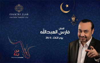 يوم الثلاثاء ٢٩/٥/٢٠١٨ كونوا معنا مع الفنان فارس العبدالله بخيمه دندنه من هيونداي – ب ترس Country Club طريق المطار