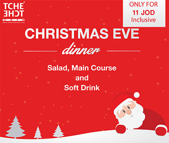 Enjoy the Holidays with your loved ones and let us do the cooking..!! Join us at any of TCHE TCHE branches and enjoy your choice of salad, main course , soft drink Tea & Coffee only for 11 JOD including taxes and service, Stay tuned there will be a lot of surprises and valuable gifts.