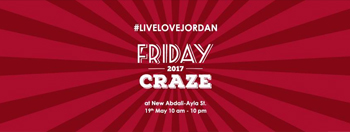 Join us for our LiveloveJordan Friday Craze Family Festival on May 19th, 2017 at Ayla Street- New Abdali. It will be a day full of activities including games, bazaar, food stall and live entertainment for all ages. This event will strongly rely on empowering youth and will completely be run by volunteers.