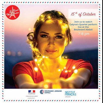 The first day of Le French Marché is hosting a true aspiring Jordanian STAR! Galyna’s Quartet who changed her career from a BA in Computer Science to fluently singing in 8 different languages and different styles. (Public Event)