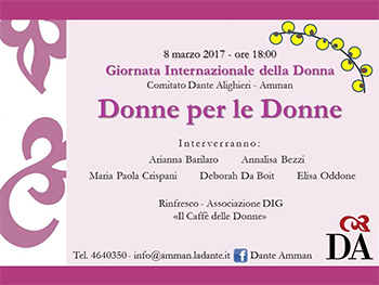 In occasione della Giornata Internazionale della Donna, il Comitato Dante di Amman invita tutti a partecipare al dibattito “Donne per le Donne”.
