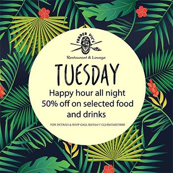 All night long 50% discount this Tuesday at Trader Vic’s Amman
