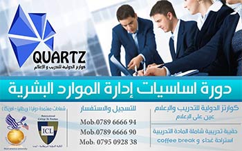 تعلن كوارتز الدولية للتدريب والإعلام عن بدأ التسجيل في دورة