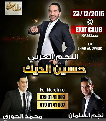 With The Arab Star Huseein Al Deik , The Jordanian Star Najm Al Salman And The Arab Idol Mohammad AlHouri Accompanied with the Greatest DJ Ehab Al Dweik