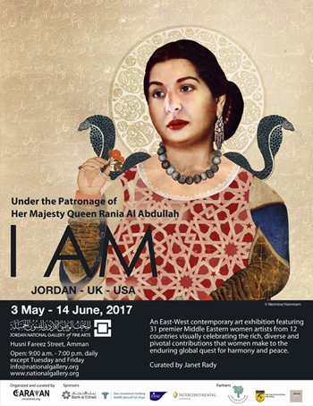 “I AM” is an East-West peace building art exhibition featuring 31 premier and emerging Middle Eastern contemporary women artists from 12 countries visually celebrating the rich, diverse and pivotal contributions that Middle Eastern women make to the enduring global quest for peace and harmony. The I AM exhibition will open on 3 May 2017 in Amman, Jordan at the National Gallery of Fine Arts and will run through 14 June.