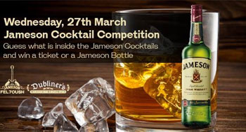 Join us for a Jameson Cocktail night and try to figure out what is inside the Jameson Cocktail, and if you hit the jackpot and know what is the ingredients used, you will enter a draw and might win tickets for Jameson Fel 7oush tickets or a Bottle.