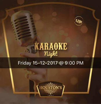 Enjoy this Friday 15-12-2017 at your second home Houston’s Restaurant and Pub and sing out loud your favorite songs and lyrics!