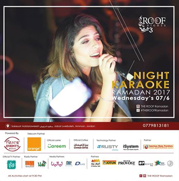 نقدم لكم ليلة الكاريوكي الثانية على مسرح ليالي ذا روف رمضان، باجواء عائلية مميزة تناسب الجميع بوجود المذيع الرائع من راديو هلا أف أم أحمد دعموس ومذيع الكاريوكي الاول في الاردن زيد كسواني موعدنا معاكم يوم الاربعاء الموافق 07/6/2017 بعد الافطار.