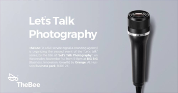 “TheBee ( is a full-service digital & Branding agency) is organizing the second event of the “Let’s talk” series, by the title of “Let’s Talk Photography”, on Wednesday, November 1st, from 5-8pm at BIG BIG (Business, Innovation, Growth) by Orange, AL Hussein Business park, BLDG 23.
