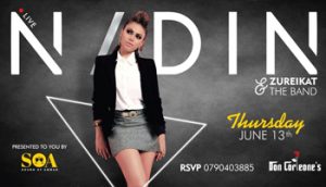 This Thursday, 13th of June, Sound Of Amman invites you to Don Corleone's to experience an unforgettable night with the talented: NADIN & THE BAND Featuring DJ ZAID ALKHUDARI • Doors open at 8PM until late. • Tickets are sold at the door for 10 JOD. Guest list and more info please call 0790403885