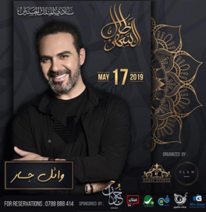 محبوب الجماهير الفنان وائل جسار في طال السهر * يوم الجمعة 17/05/2019 * لمعرفة اسعار التذاكر والحجز يرجى الاتصال على الارقام التالية 0788888414 * اسعار التذاكر شاملة السحور * تفتح الابواب الساعة العاشرة مساء