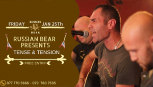 Russian Bear presents Tense N' Tension going live! As they are about to rock your night with lots of original & cover tunes all night long on Friday the 25th of January. Book your table now by calling: 077 770 5666 - 079 760 7505 21+ Free Entry Door policy apply.