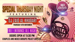 Special Thursday Night is back at S61 Lounge ---------------------------------------- Join us this Thursday 8 of November for an Epic DJ-Night featuring Your favorite DJ- Zaid Al Khudari Bring your friends and dancing partners and come along! FREE ENTRANCE ALL NIGHT Doors open at 9:30 PM. Couples and Mixed groups policy applies. ---------------------------------------- Enjoy a discount on Tequila shots all night long Tow Shots Of Tequila Only 5 JOD All Night ---------------------------------------- For Reservations : 0799503337 / 0777851770 Location: S61 Lounge