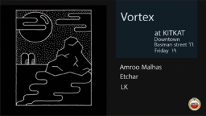 We proudly present to you the first edition of Vortex at Kitkat Downtown. This Friday October 19th. Program \ Amroo Malhas Etchar LK ( Lord Kobayashi ) Entrance; 10JD Free beer for the first 50 . *Valet available infront of the venue Supported by: Amstel - Jordan