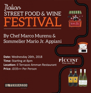 Get to know Italy’s street food & wine without leaving Amman! Join us on September 26th, 2018 at Il Terrazzo Amman while we take you on an authentic journey to enjoy Italy’s popular street food and wines! Celebrate this vibrant and ever growing food culture in an event that brings people together through food, wine and music. Our talented Chef Marco Murenu will be serving up various tasteful delights from Ravioli to fresh Pizza - street food style, of course, …