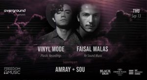 Making room for a double header of talent this Thursday, Sep 13 at Amman's newest spot Black Iris. We've got some killer views overlooking Amman & two artists coming from different corners with one thing in common; they're both ambitious about the cultural spaces they reach, and the soundscape textures they create. Vinyl Mode https://soundcloud.com/vinyl-mode Faisal Malas https://soundcloud.com/faisalmalas On the bill: AMRAY + SOU Venue: Black Iris Bar - Crowne Plaza Hotel, Amman Doors open: 9:00PM **Guest list mandatory, send …