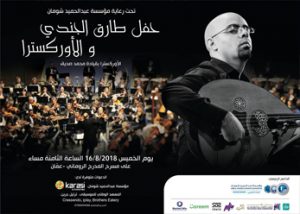 بدعم من مؤسسة عبدالحميد شومان، أمسية موسيقية للموسيقي وعازف العود الأردني طارق الجندي بمصاحبة الأوركسترا الوطنية على المدرج الروماني-عمّان، بقيادة محمد عثمان صديق، تتضمن مقطوعات من تأليف الجندي ستقدم لأول مرة بتوزيع خاص للأوركسترا. الدخول مجاني بشرط الحصول على دعوة من الأماكن التالية ابتداء من يوم الأحد 29/7/2018 مؤسسسة عبدالحميد شومان- جبل عمّان ترتيل جرين- جبل عمّان المعهد الوطني للموسيقى- رأس العين معهد كريشندو- الشيميساني iplay- الصويفية Brothers eatery- الجبيهة و الجندويل و موقع كراسي karasi.com طارق الجندي: من مواليد …