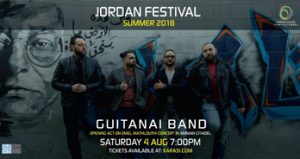 The Famous Guitanai band from Jordan & Syria will be performing live along with Emel Mathlouti on Saturday, the 4th of August in Amman Citadel. For more information or other inquiries please contact us on 0797471747 or visit www.friendsofjordanfestivals.com To purchase your ticket, kindly visit www.karasi.com فرقة جيتاناي فرقة أردنية تمتاز باللحن القريب من اللحن العربي مع مزيج عصري فرقة جيتاناي ستفتتح حفل الفنانة التونسية امال مثلوثي يوم السبت الرابع من أغسطس في جبل القلعة. لمزيد من المعلومات يرجى الأتصال …