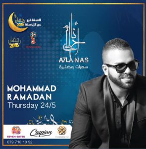 حفلة الفنان محمد رمضان يوم الخميس 24/5/2018 للحجز والاستفسار: 0797101052