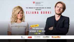 The Embassy of Switzerland in Jordan proudly presents the internationally acclaimed alphorn player Eliana Burki in a series of performances on the 11th and 12th of May in Amman. The events are organized in collaboration with ABB, Omnitrade and Nestle, managed by OrangeRed Program: ~ Friday, May 11th - 5:00 PM at Aziz Maraqa At The Boulevard https://www.facebook.com/events/382821378794478/ ------- ~ Saturday, May 12th - 7:00 PM at The Boulevard - Public Concert Eliana Burki, born in 1983 in Switzerland, is …