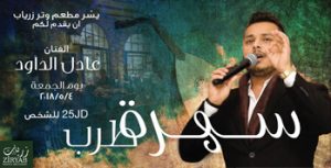The talented artist Adel Al Daoud At Watar Ziryab this Friday 5th May 2018... Invite your friends families & Love ones to enjoy a tremendous tarab night... For reservation call 07 700 700 50 W A T A R Z I R Y A B | Where Food & Memories Are Made