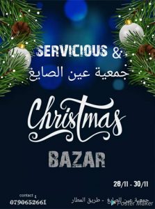 بازار الفرح - وتحضيرات عيد الميلاد المجيد رح نبدا يوم الخميس ٢٨/١١ الى يوم السبت ٣٠/١١ رح يتضمن البازار احتفالات زيارة بابا نويل ومسابقات وجوائز واكيد طاولات مختلفة من الزينة للحلويات والاكسسوارات والالعاب والشموع وغيرها كتير شاركون بازارنا في قاعات عين الصايغ - طريق المطار بالشراكة مع Servicios لحجز الطاولات وتعرض بضاعتك : 0790652661