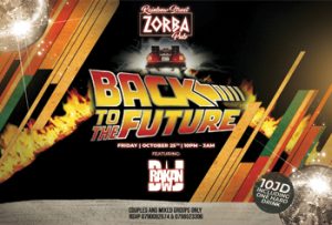 Friday 25th of October Back to the FUTURE @ Zorba Pub Feat. DJ Rakan Warraqi Entrance 10 JD with one Drink Contact: 0790092674 & 0798523396