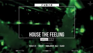 House The Feeling at FUBAR ! Get ready for a night of pure Electronic, Techno and House beats featuring #Razex #Moh #WaleedAli #GAD Event's Details: Date: Thursday 17.10.2019 Time: 9:00 pm Entrance: FREE before 11:00 pm 10 JDs till 12:00 am 15 JDs after 12:00 am For VIP tables please RSVP 0797777860 Couples and Mixed Groups ONLY Dress Code: Smart casual LIVE VISUALS by @SUBSTANCE