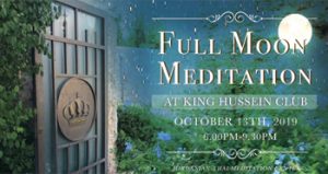 Full Moon Meditation on 13th October 2019, Sunday 6.00pm-9.30pm Location: King Hussein Club https://goo.gl/maps/vaSbrdBtzhSjWDY27 6.00pm Welcome drinks 6.30pm Mindful Stretching & Meditation&Loving Kindness Sharing 9.30pm Tea Time & English Sweet in The Garden Once confirm coming please sign in the Link: https://forms.gle/77TweEyi1iY2ugiUA For booking and more information please call: English: 077-7836427, 079-0754026 Arabic: 079-6665629, 079-5195572