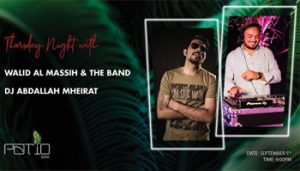 Your plans are set this Thursday Sep. 5th at Patio, with Walid al Massih & the Band and DJ Abdallah Mhairat! Book your table now by calling us at 0792270000 *Couples and mixed groups only * Age minimum is 27