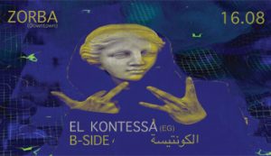 El Kontessa is an up and coming DJ based in Cairo that uses electronic beats and samples, and experiments with local Egyptian music, Shaabi music and Mahraganat. She has been featured on radio stations in the US and London. Come and check her out this 'Friday 16' at Zorba Rooftop Lineup: El Kontessa B-Side Entrance: 10JOD Doors: 21:00 - 03:00 Zorba Rooftop, Downtown 21+