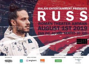 Malahi ENTERTAINMENT PRESENTS Russ AT THE ROMAN THEATER AMMAN THURSDAY 1ST OF AUGUST 2019 TICKETS Fan pit 40JOD Seated 20 JOD DOORS OPEN 8PM LIMITED MEET & GREET * TICKET 60 JOD || DOESN'T INCLUDE ACCESS TO EVENT * MEET & GREET AND PHOTO OPPORTUNITY WITH RUSS POST-SHOW. PATRON TO SUPPLY OWN CAMERA/PHONE TICKETS SOLD AT SAJILNI.COM & IN STORES AT Fatty Dabs Burger Shack - ABDOUN & MECCA STREET 11am-12:30am Shams @ SHAMS EL BALAD - JABAL AMMAN 10am …
