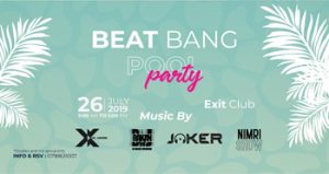 Summer is hot Bikini and short Drink your shot You're on the right spot BEAT BANG Pool party 26 of July 2019 @ EXIT CLUB From 9:00 am till 5:00 pm Artists Lineup DJ X Fadi DJ Rakan Warraqi DJ JOKER Percussion (Nimri Show) Couples and mix group only Ticket price (20 JD) including (1 Drink) For info 0798631007 Policy applied